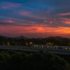 「先ほどまで降っていた雨が止んで、今、夕日がきれいです。