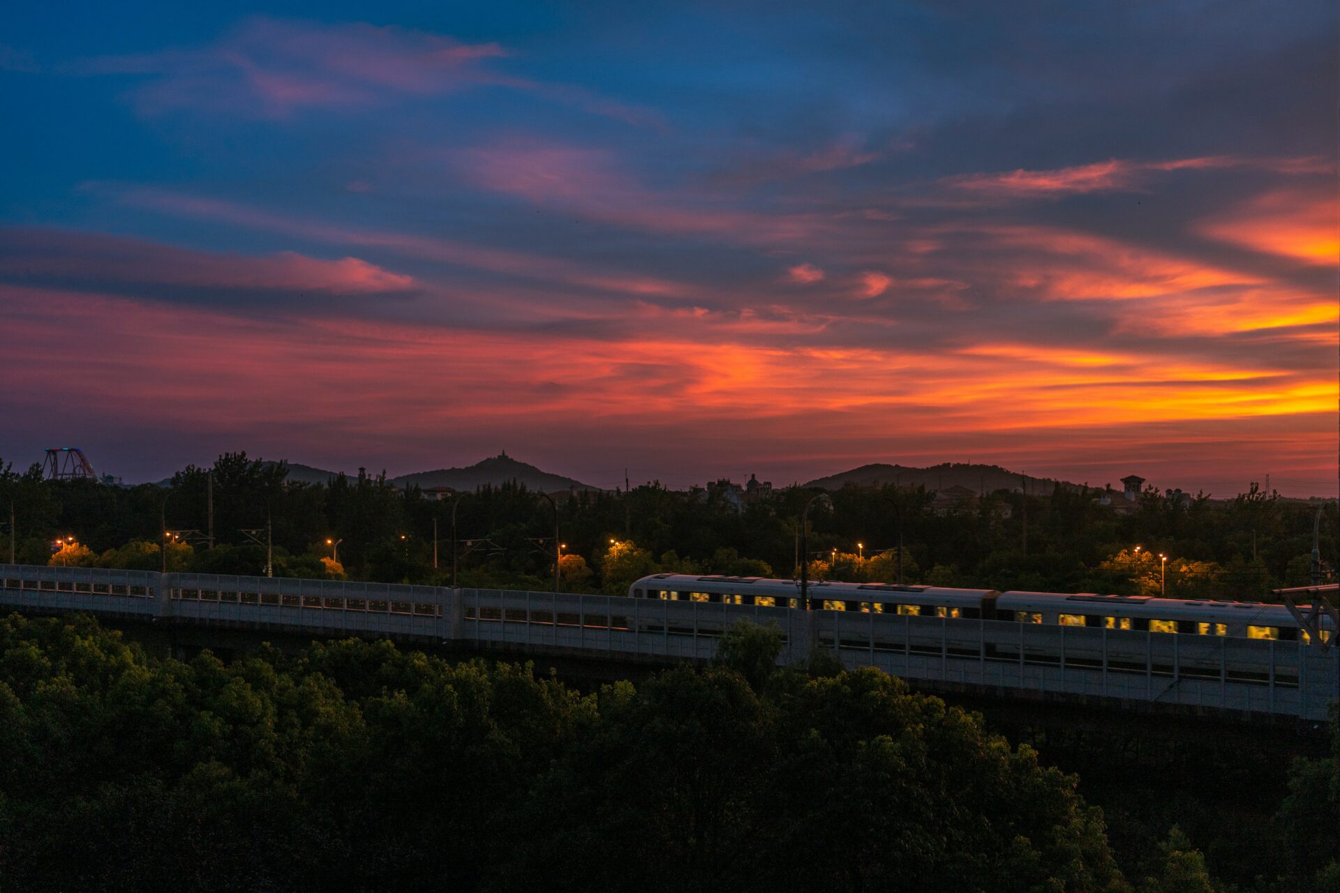 しばらくの間、ホームに立ち、夕焼け空を眺めていました。